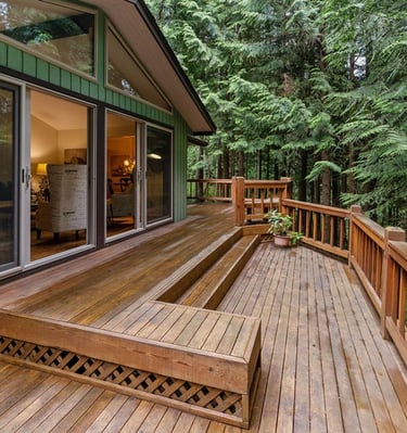 Our pressure-treated wood decks offer strength and affordability, perfect for creating a personalized outdoor space that meets your needs and style.