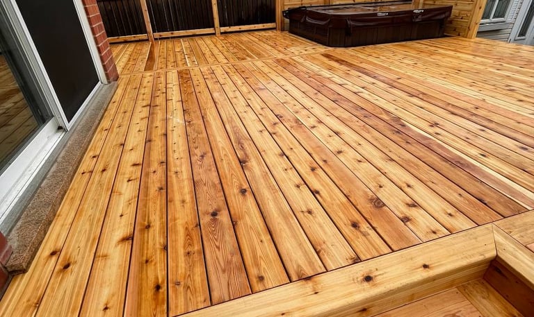 Experience the natural beauty and durability of our cedar decks, designed to resist rot and insects while providing a warm, inviting atmosphere for your outdoor gatherings.